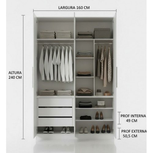 Dimensões (A x L): 240 cm x 160 cm Profundidade Externa: 50,5 cm